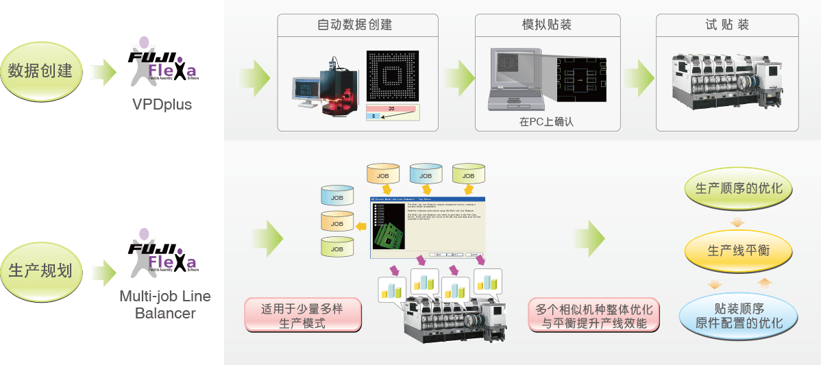 FUJI Flexa是一個新型SMT生產(chǎn)線管理系統(tǒng),該系統(tǒng)可以靈活的適合各個用戶的生產(chǎn)狀態(tài),并通過使用向?qū)В╓izard)以及宏(Macros)等自動功能,使生產(chǎn)性得到更大的提高。